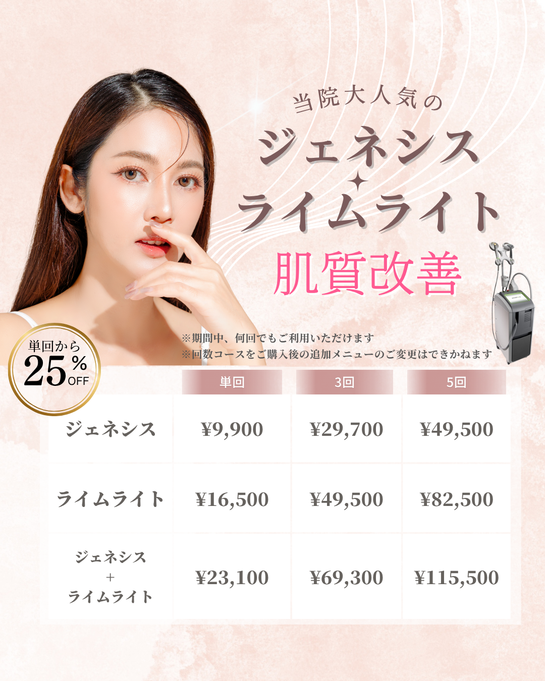 さらに今回大人気施術”ジェネシス・ライムライト”のキャンペーン❣